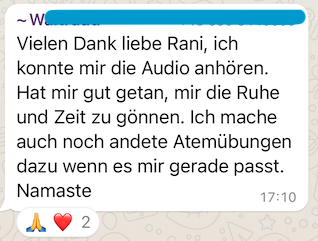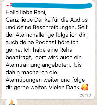 Hallo! Ich bin Rani – Yogalehrerin, Krisenfest-Expertin und leidenschaftliche Atmerin. Meine Mission ist es, Frauen wie dich zu inspirieren, ihre innere Stärke zu entdecken und die heilsame Kraft des Atems zu nutzen. Besonders in einem vollen und oft herausfordernden Alltag kann bewusste Atmung der Schlüssel zu mehr Gelassenheit und Resilienz sein. Ich freue mich darauf, dich auf deiner Reise zu mehr Wohlbefinden und innerer Balance zu begleiten. (Möchtest du mehr über mich erfahren?)