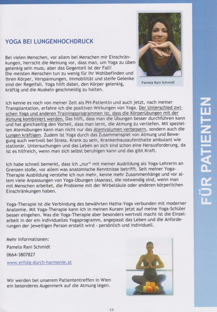 Ich möchte hier gerne meinen Artikel „Yoga bei Lungenhochdruck“ teilen, der im Patienten Newsletter für Lungenhochdruck-Patienten erschienen ist. Yoga ist eine Methode, sich kraftvoller und lebendiger zu fühlen und ein Tool um ruhiger zu werden und seine inneren Kräfte zu mobilisieren.